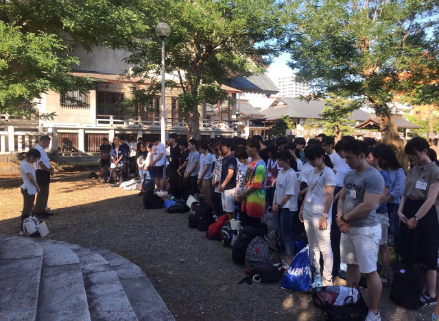 平潟公園の戦災殉難者慰霊塔にて黙祷を捧げます。